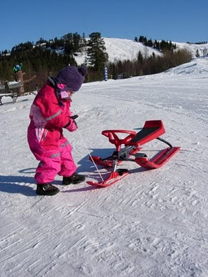 Storebrors skidåkning har utvecklats enormt i veckan. Han åkte med ett helt nytt självförtroende och längtade till skidskolan varje dag. Malin provade pjäxorna - sedan var det stopp! Men hon var supernöjd med pulkabacken. Själv fick jag möjlighet att åka både längd och ta några telissvängar. Tack vare vinterns träning orkade jag SÅ mycket mer än jag gjort på många år. Gott!